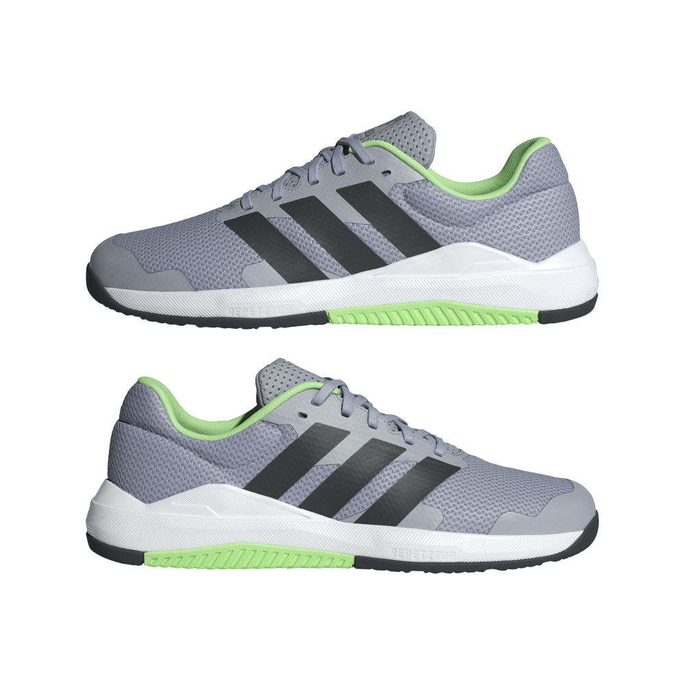 Supera tus límites en el gimnasio. Este calzado para training adidas está hecho para entrenamientos de fuerza. El antepié ancho, la confección baja y la suela con estampado de taches multidireccionales te mantienen estable y en control durante movimientos explosivos y levantamientos pesados. El exterior de malla transpirable está reforzado con revestimientos 3D para un mayor soporte.