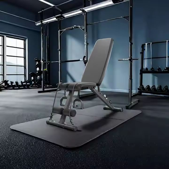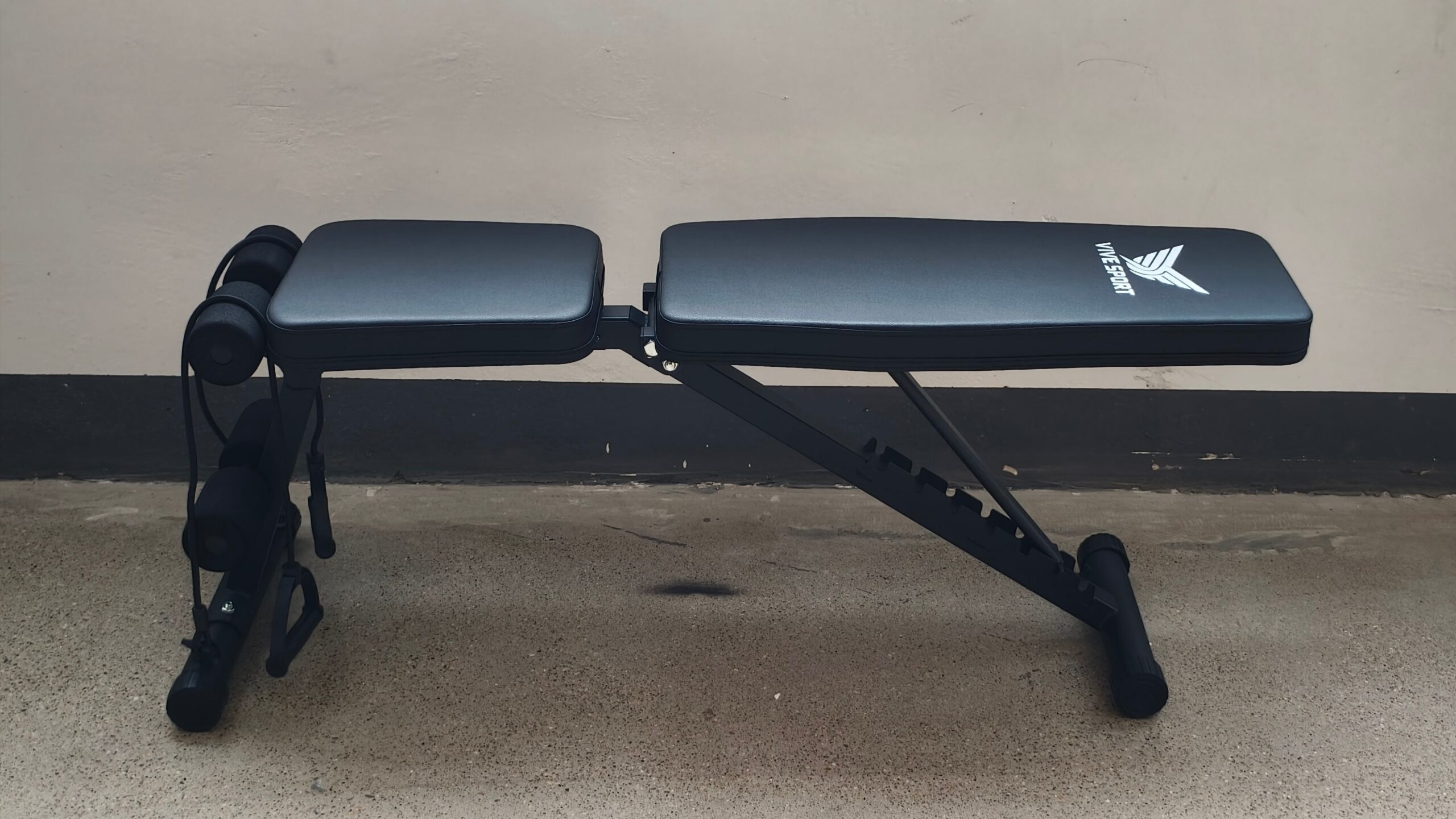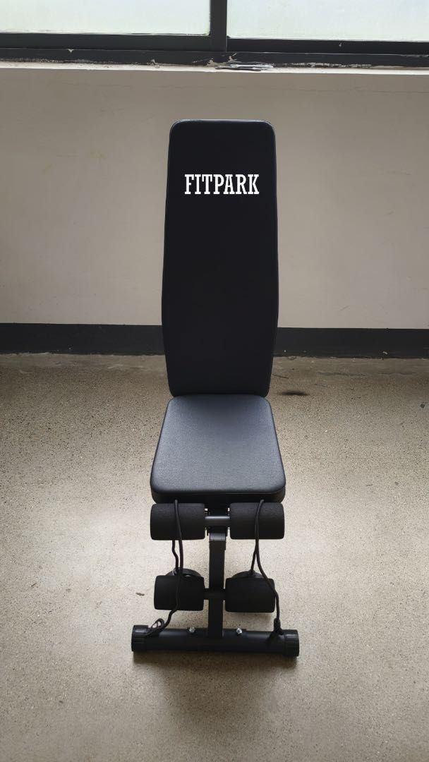 Este banco de pesas es muy bien acolchado lo que garantiza una mayor comodidad y seguridad. La inclinación es variable. Viene con ligas de resistencia integradas.