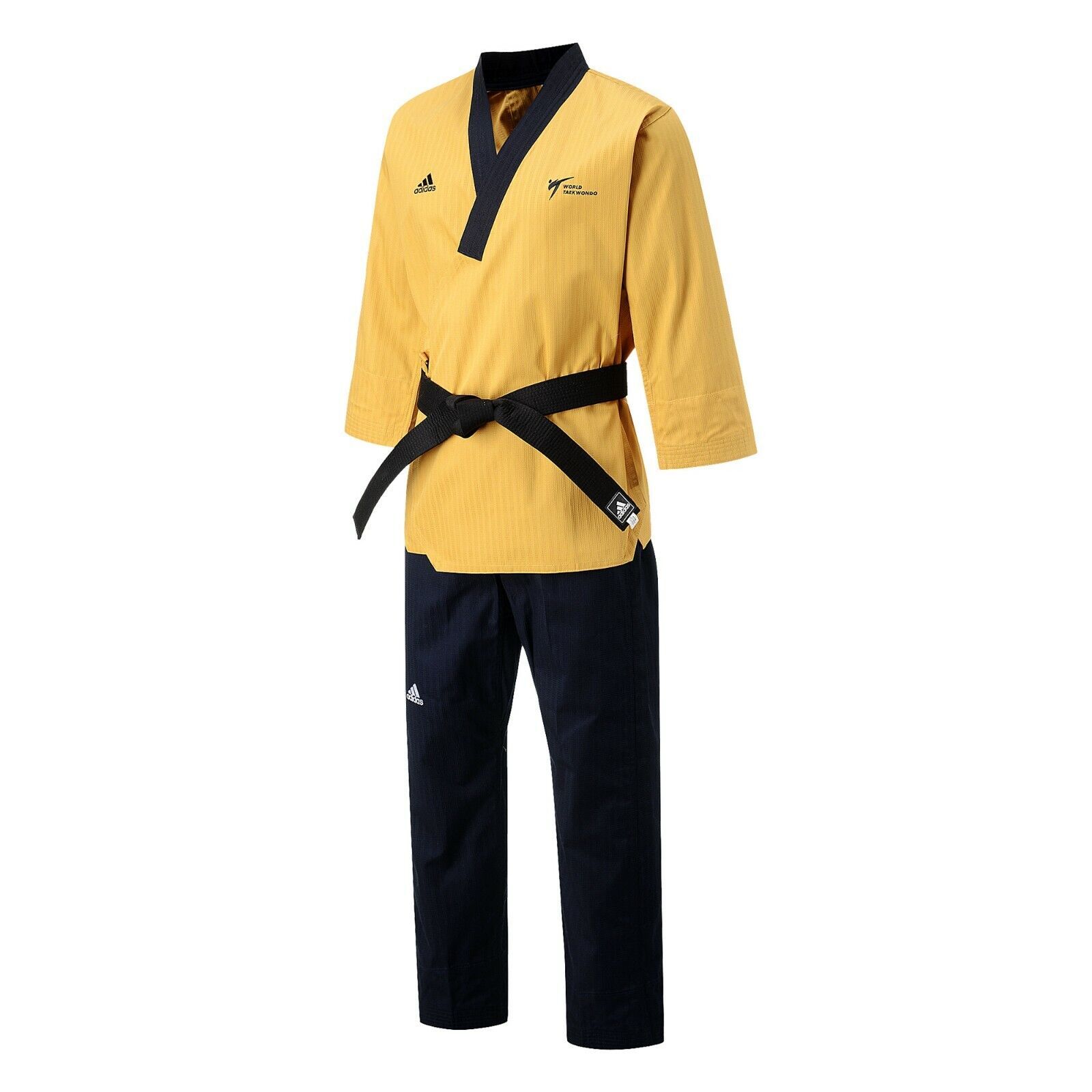 Uniforme especializado para Poomsae. Versión de color mostaza para la categoria Master. Marca adidas, aprobado por la WT para competencias. Material muy cómodo de 65% poliéster y 35% de algodón.